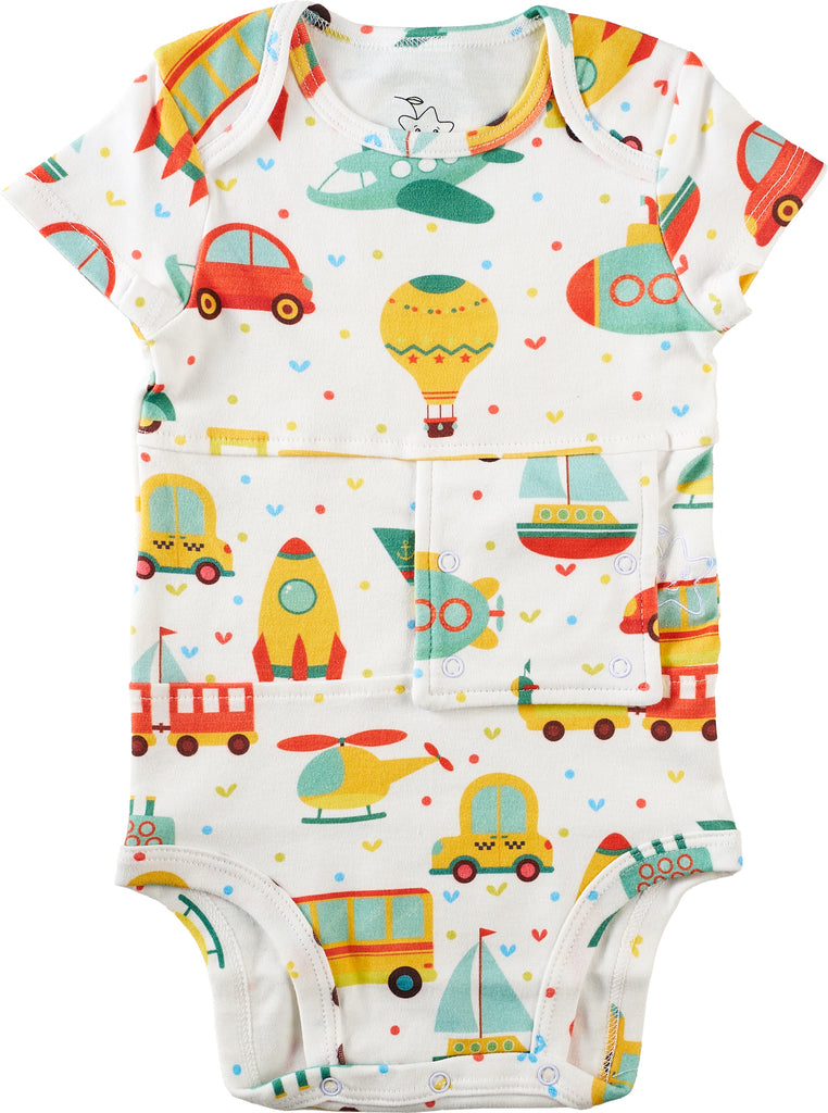 - 100% cotton onesie for infants and toddlers on feeding tube.